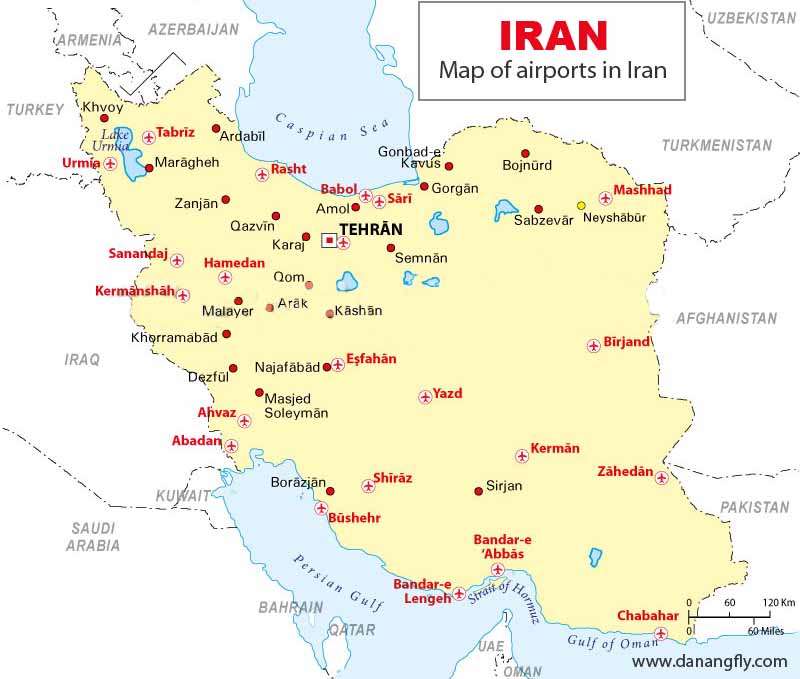 (Map of airports in Iran – Bản đồ các sân bay tại Iran)