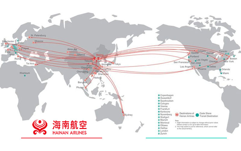 (Bản đồ đường bay hãng Hainan Airlines)